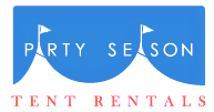 Our Canopy tents are very popular for smaller events and backyard parties. These tents do not have frames but instead have a combination of poles, ropes and stakes to support them. Their design requires about 6 more feet of open space on all four sides around the tents edges for the stakes. For example: a 20' x 20' tent would require a 32' x 32' area to be set up properly. Our Canopy tents are all white, yellow/white, blue/white, come in different sizes starting at 15' x 15' and are professionally installed. For more information refer to our things to consider page.